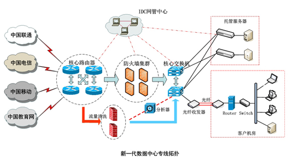 新一代數(shù)據(jù)中心的BGP多線互聯(lián)服務(wù),擁有獨(dú)立的自治域(AS),是廣東省內(nèi)與中國(guó)電信、中國(guó)網(wǎng)通和中國(guó)鐵通實(shí)現(xiàn)本地BGP多線互聯(lián)的IDC運(yùn)營(yíng)商。同時(shí)與中國(guó)移動(dòng)、中國(guó)聯(lián)通、中國(guó)教育網(wǎng)以及二級(jí)運(yùn)營(yíng)商建立光纖直聯(lián),全冗余的網(wǎng)絡(luò)設(shè)計(jì),是中國(guó)目前互聯(lián)互通服務(wù)的網(wǎng)絡(luò)平臺(tái)。 新一代數(shù)據(jù)中心作為CNNIC(中國(guó)互聯(lián)網(wǎng)信息中心)IP地址分配聯(lián)盟成員,目前擁有8個(gè)B段的IP地址。通過(guò)與中國(guó)電信、中國(guó)網(wǎng)通、中國(guó)鐵通的BGP落地協(xié)議然后將IP地址廣播到運(yùn)營(yíng)商的網(wǎng)絡(luò)中。網(wǎng)絡(luò)運(yùn)營(yíng)商的所有骨干路由設(shè)備將會(huì)判斷到新一代數(shù)據(jù)中心IP段的最佳路由,以保證客戶的高速訪問。 新一代數(shù)據(jù)中心可為用戶提供DDN、幀中繼、ATM、LAN等多種專線接入方式,滿足用戶遠(yuǎn)程維護(hù)、接入Internet、實(shí)現(xiàn)企業(yè)城域互聯(lián)或進(jìn)行其它經(jīng)營(yíng)活動(dòng)等各種需求。